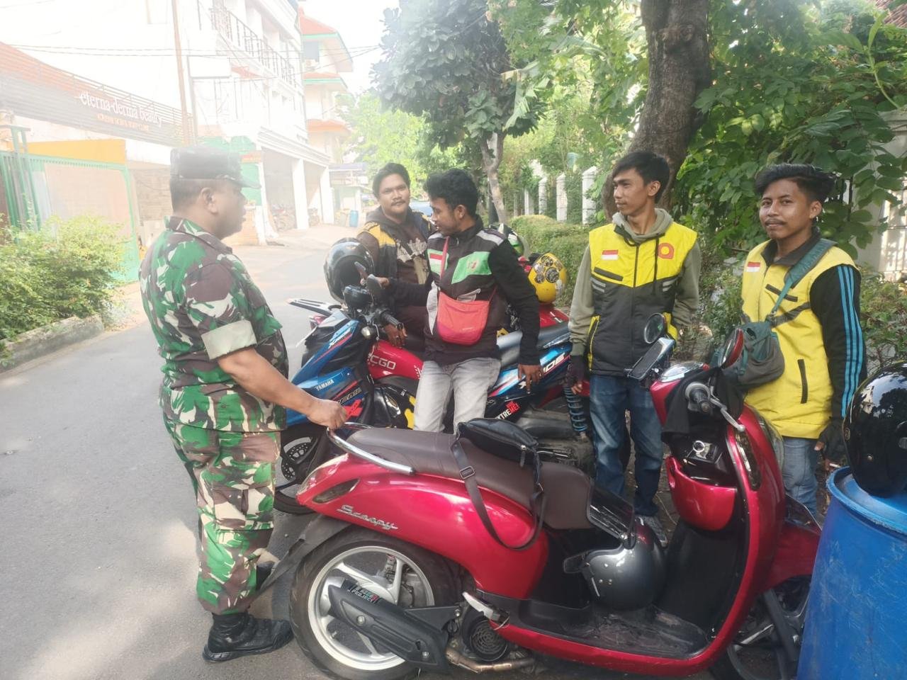 Portalindo.co.id | Kodam Jaya, Kodim 0503/JB _ Eratkan hubungan dengan warga dan Komonitas Ojek Online (Ojol), Babinsa Kelurahan Krukut, Serma Agus Priyono anggota Koramil 01/Tamansari melaksanakan komunikasi sosial (komsos) di Jalan Mangga Besar IVi, Kelurahan Tamansari, Kecamatan Tamansari, Jakarta Barat. Sabtu (5/7/25)