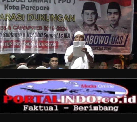 Portalindo.co.id,Sulsel/Parepare – Forum Peduli Umat (FPU) Kota Parepare bersama sejumlah tokoh agama dan tokoh masyarakat Kota Parepare, Sulawsi Selatan, mendeklarasikan dukungan mereka kepada bakal calon Presiden dan Wakil Presiden 2019 Prabowo Subianto dan Ustaz Abdul Somad (UAS) di sekretariat FPU Kota Parepare, Sulawesi Selatan.