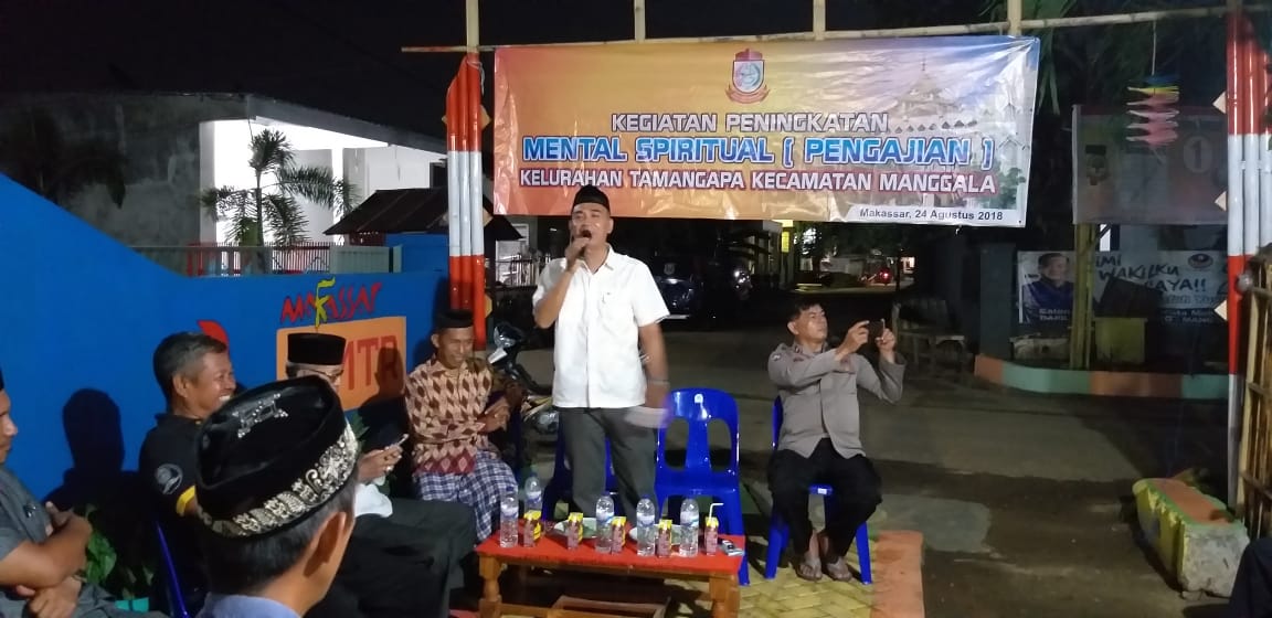 Turut hadir Lurah Tamangapa,Binmas Polsek Manggala,dan Masyarakat setempat, Rasyid Lurah Tamangapa Mengatakan, Pengajian lorong tingkat Kelurahan Tamangapa adalah salah satu program bapak Walikota Makassar Muh.Ramdhan Pomanto, “Ini tujuanya bagaimana supaya nuangsa keagamaan tercipta di lorong-lorong sehinga mental spiritual masyarakat betul betul sejalan dengan nilai nilai agama yang dianutnya,Katanya.