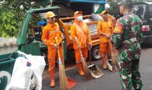 Portalindo.co.id | Kodam Jaya, Jakarta Barat _ Anggota Koramil 01/Tamansari Kodim 0503/JB, Babinsa Kelurahan Keagungan Serka Kusnodin pimpin karya bakti dengan kegiatan Menyapu, Membersihkan Jalanan dan got serta Membuang Sampah di Jalan Keadilan dalam RT. 03/02, Kelurahan Keagungan, Kecamatan Tamansari, Kota Adm Jakarta Barat. Jum’at (22/08).