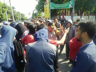Gowa -Mengetahui adanya aksi unjuk rasa yang dilakukan tidak sesuai aturan, Kapolres Gowa Akbp Shinto Silitonga, SIK., MSi terjun langsung menemui massa pendemo yang dilakukan di perempatan jalan Mesjid Raya – jalan Andi Mallombassang Kec. Somba Opu Kab. Gowa, Selasa (01/05).