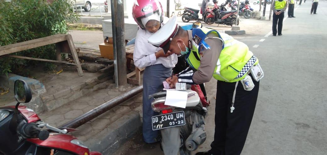 Operasi yang dipusatkan di Jl. Mesjid Raya Kec. Somba Opu Kab. Gowa ini menyasar para pelanggar dengan target para pelajar yang membawa kendaraan dan para pengendara / penumpang yang tidak menggunakan helm.