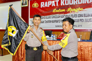 Gowa -Pemberian “Bendera Hitam” secara bergilir kepada Satker / Polsek yang berkinerja rendah adalah terobosan baru yang kini dilakukan oleh Kapolres Gowa Akbp Shinto Silitonga, SIK., MSi setiap sudah melaksanakan kegiatan Anev.
