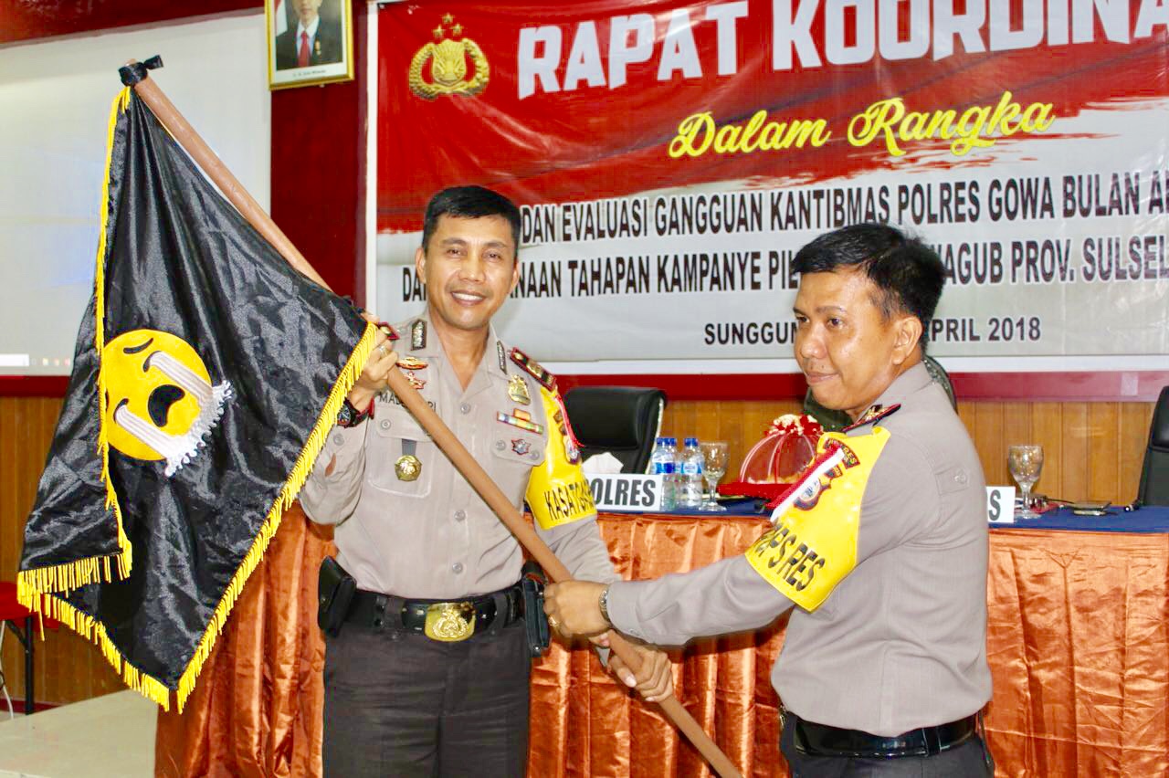 Gowa -Pemberian “Bendera Hitam” secara bergilir kepada Satker / Polsek yang berkinerja rendah adalah terobosan baru yang kini dilakukan oleh Kapolres Gowa Akbp Shinto Silitonga, SIK., MSi setiap sudah melaksanakan kegiatan Anev.
