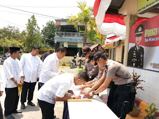 Portalindo.co.id, Gowa-Bertempat di Mako Polsek Bajeng, kembali dilaksanakan penanda tanganan Fakta integritas antara Kapolsek Bajeng Iptu Hasan Fadhlyh. SH dengan bakal calon Kepala Desa, Rabu (12/9/2018), pukul 11.30 wita.