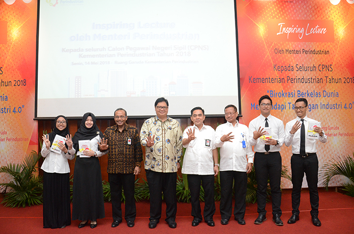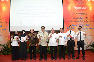 Menteri Perindustrian Airlangga Hartarto memberikan motivasi kepada CPNS Kemenperin agar menyiapkan diri untuk menjadi birokrasi berkelas dunia yang akan membawa Indonesia menjadi negara 10 besar ekonomi terbesar di dunia tahun 2030 pada Inspiring Lecture Tahun 2018 di Kementerian Perindustrian Jakarta.