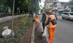 Portalindo.co.id | Kodam Jaya, Jakarta Barat _ Koramil 01/Tamansari Kodim 0503/Jakarta Barat gelar Kerja Bakti membersihan jalan dan membersihan Saluran Air serta mengangkat sampah dan sedimen yang berpotensi menyumbat saluran air di Sepanjang Jalan Mangga Besar V di Kelurahan Mangga Besar, Kecamatan Tamansari Jakarta Barat, Jumat (20/12).