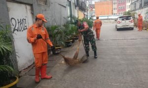 Portalindo.co.id | Kodam Jaya, Jakarta Barat _ Babinsa Koramil 01/Tamansari Kodim 0503/JB, Serma Agus Priyono bersama PPSU melaksanakan kerja bakti di Jalan Kejayaan RW.01 dan RW.08, Kelurahan Krukut, Kecamatan Tamansari Jakarta Barat. Jumat (24/10).