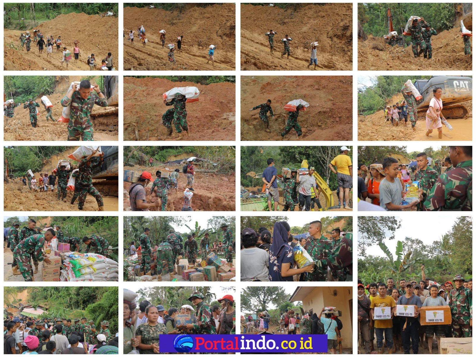 PORTALINDO.CO.ID | TAPANULI _ Prajurit Satgas Yonif 122/Tombak Sakti (TS) Kodam I/BB kembali menunjukkan komitmen kemanusiaan dengan menembus tiga desa terisolir akibat bencana alam di Kecamatan Sitahuis, Kabupaten Tapanuli Tengah. Pada Selasa (2/12/2025), prajurit berjalan kaki sekitar lima kilometer untuk menyalurkan bantuan logistik ke Desa Naga Timbul, Desa Mompang, dan Desa Mardame setelah akses jalan menuju wilayah tersebut terputus total.