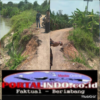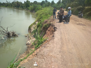 Kepala desa Suka Mulya, Kecamatan Teluk Gelam, Kabupaten OKI, Tarzan saat dibincangi dilokasi menjelaskan, runtuhnya jalan penghubung dua desa ini dikarenakan terkikisnya tanah penopang jalan secara terus menerus oleh derasnya arus sungai sehingga aspal jalanpun runtuh dan terbawa arus sungai.