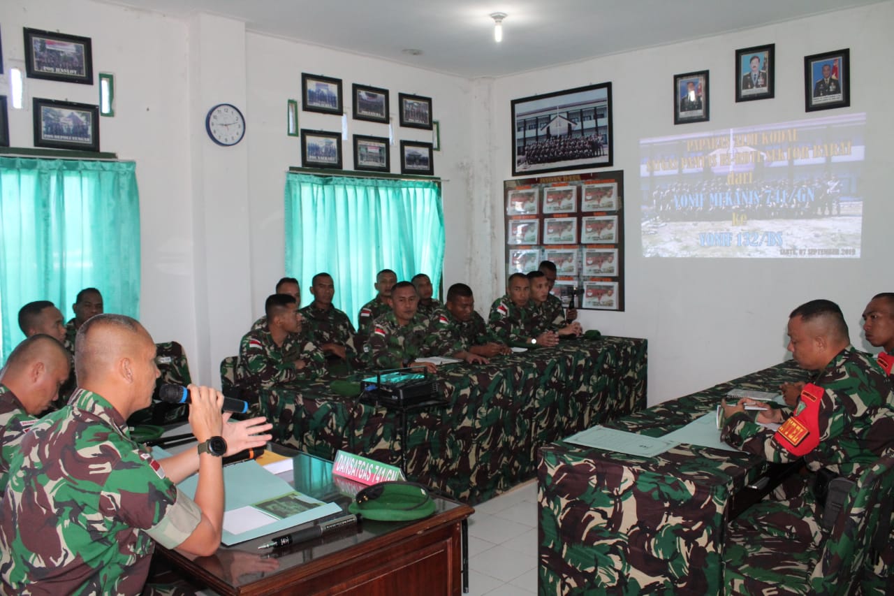 “Usai foto bersama, dilanjutkan dengan presentasi berbagai hal terkait tugas Pamtas di Sektor Barat, termasuk kegiatan lainnya yang sudah dilaksanakan sebagai Satgas lama serta, dijelaskan beberapa alternatif kegiatan lainnya yang dapat dilakukan Satgas Yonif 132 sebagai Satgas yang baru.