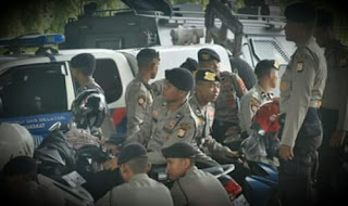 Kapolrestabes Makassar Kombes Pol Irwan Anwar, beserta Dansat Brimob Polda Sulsel Kombes Pol Ade Muhan, serta Kabid Humas Polda Sulsel Kombes Pol Dicky Sondani hadir dalam gelar pengamanan tersebut.