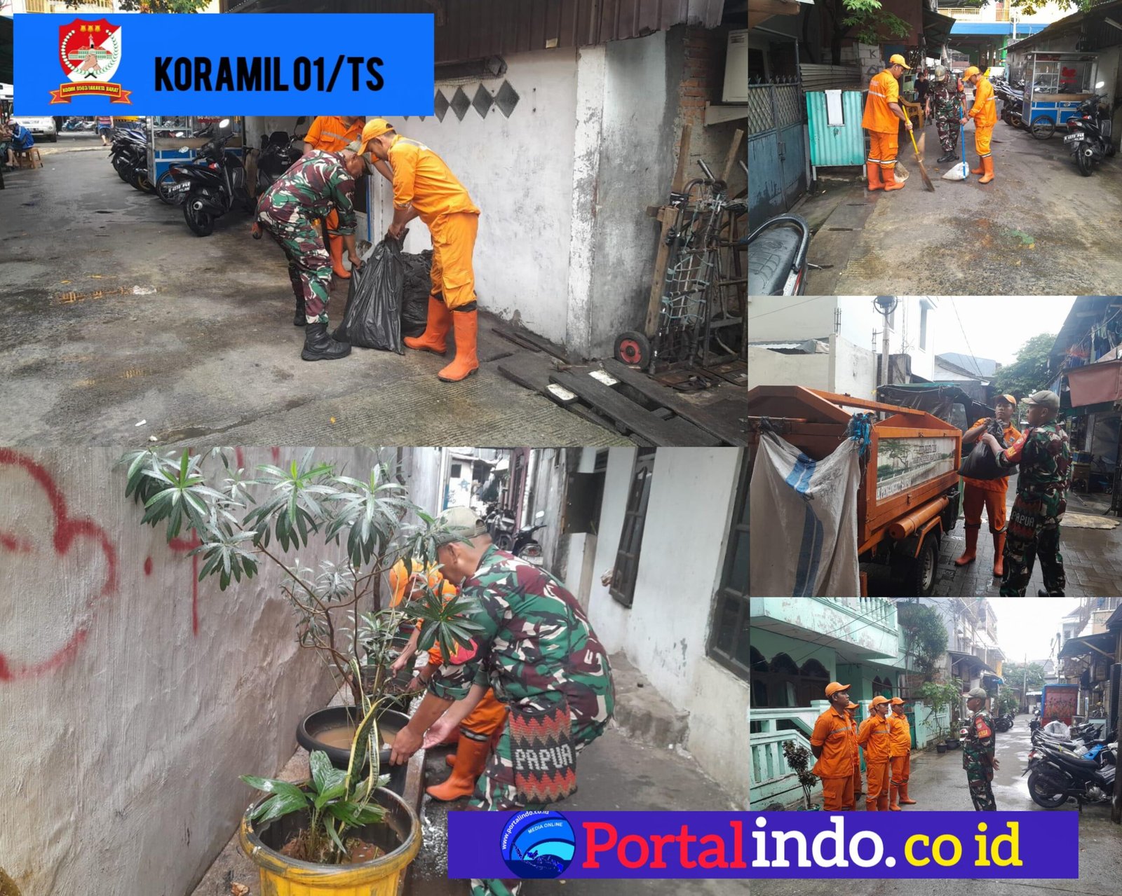Portalindo.co.id | Kodam Jaya, Jakarta Barat _ Kerja bakti TNI yang dilaksanakan Koramil 01/Tamansari Kodim 0503/JB bertujuan untuk meningkatkan kesejahteraan dan kemandirian masyarakat melalui pembangunan infrastruktur fisik dan non-fisik, memperkuat kemanunggalan TNI dengan rakyat, serta membangun kebersamaan dan solidaritas antar komponen bangsa.