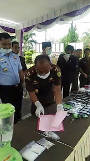 KAYUAGUNG (portalindo.co.id)--Kejaksaan Negeri (Kajari) Kabupaten Ogan Komering Ilir (OKI) kembali gelar pemusnahan beberapa jenis barang bukti (BB) seperti, narkoba jenis Sabu, Ekstasi dan Ganja serta Senjata api rakitan (senpira) laras pendek berserta material amunisi aktif juga senjata tajam.