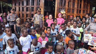 Dalam kunjungan tersebut Kapolda Papua mengajak anak anak di taman Baca somatua untuk bermain dan belajar juga menyanyikan lagu Indonesia Raya serta pengucapan Pancasila.