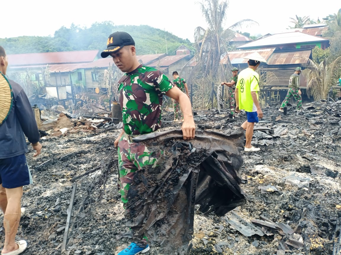 Portalindo.co.id, JAKARTA – Personel Satgas Pamtas RI-Malaysia Yonif 614/Rjp bahu membahu bersama Babinsa, Bhabinkamtibmas, dan warga setempat membersihkan puing-puing bangunan yang terbakar di Desa Long Pujungan, Kecamatan Pujungan, Provinsi Kalimantan Utara.