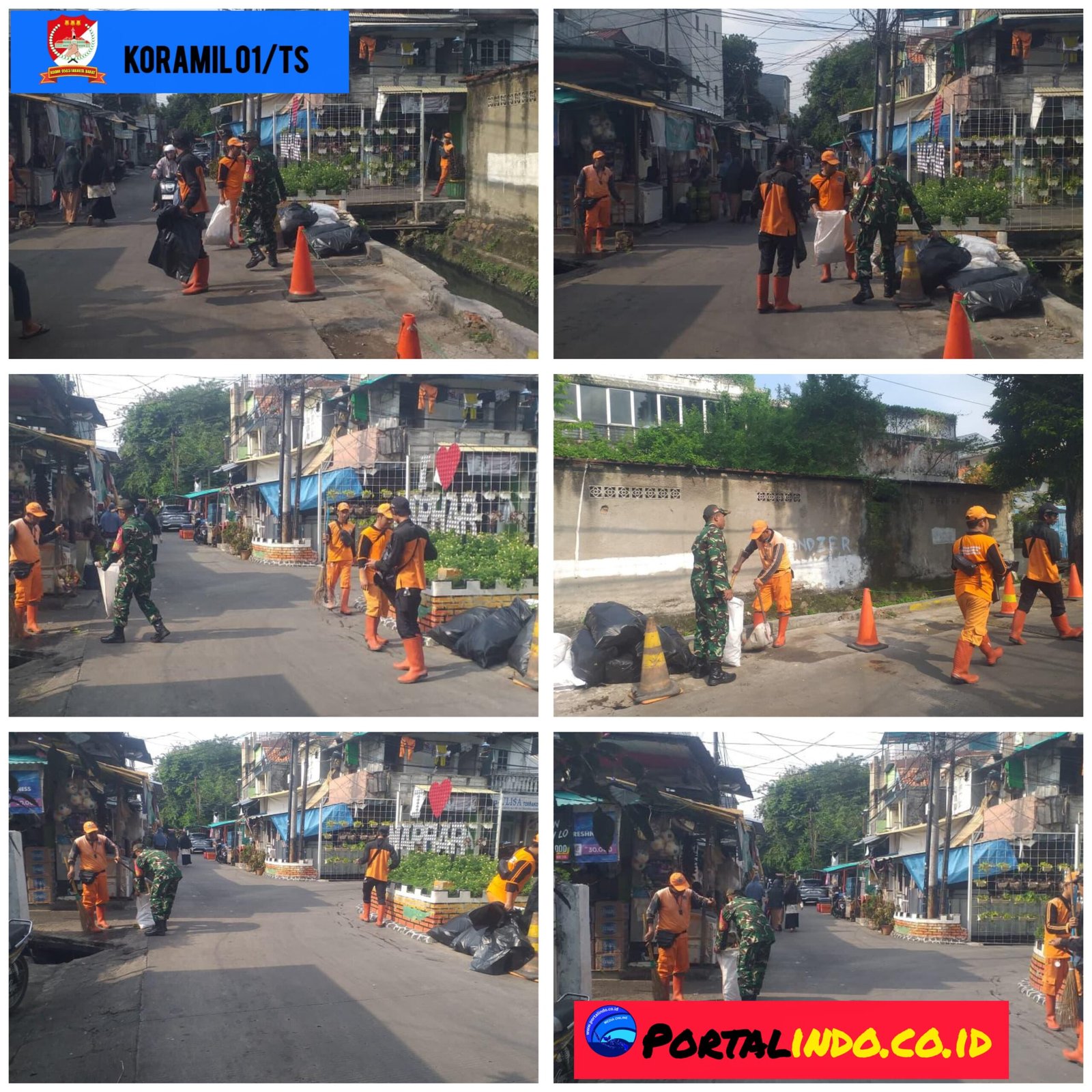 Portalindo.co.id | Kodam Jaya, Jakarta Barat _ Budaya gotong royong di gencarkan Koramil 01/Tamansari Kodim 0503/JB dengan melaksanakan kerja bakti pembersihan Jalanan dan membuang Sampah di Jalan Kebon Jeruk XVI, RW. 08, Kelurahan Maphar, Kecamatan Tamansari, Jakarta Barat. Minggu, (09/11/2025).