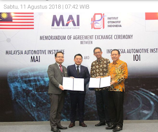 Portalindo.co.id, Jakarta – Indonesia lewat Institut Otomotif Indonesia (IOI) melakukan pertukaran Memorandum of Agreement (MoA) dengan CEO Malaysia Automotive Institute (MAI) Dato Mohamad Madani Sahari, Jumat (10/8/2018).