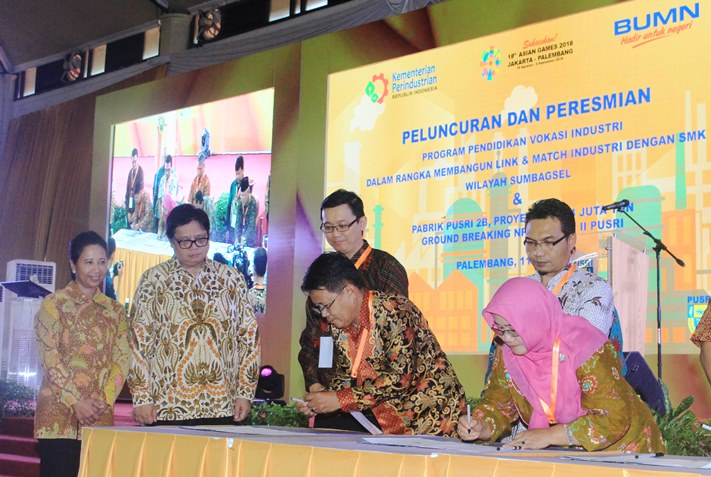 Hal tersebut disampaikan Menteri Perindustrian Airlangga Hartarto pada acara Peluncuran Program Pendidikan Vokasi yang link and match antara industri dengan Sekolah Menengah Kejuruan (SMK) untuk wilayah Sumatera Bagian Selatan di PT. Pupuk Sriwijaya Palembang, Jumat (11/5).