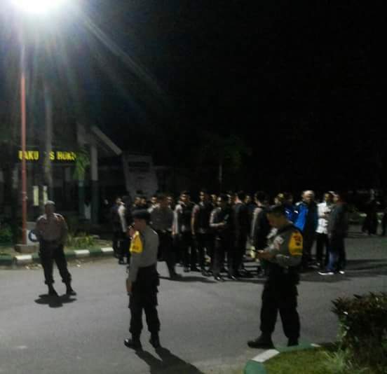 Ratusan personel kepolisian ini melakukan penyisiran di Fakultas Teknik dan memaksa mahasiswa untuk meninggalkan kampus, pasca terjadinya kerusuhan.