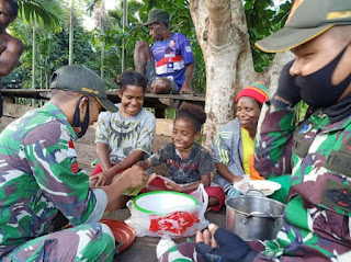 PORTALINDO.CO.ID, PAPUA, (22/3/2021) -Prajurit TNI yang tergabung dalam Satuan tugas pengamanan perbatasan (Pamtas) di wilayah Indonesia dan Papua Nugini (RI -PNG) mengajari mama-mama di Papua tentang cara membuat kue.