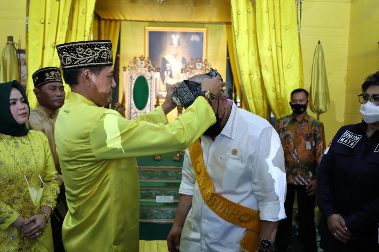 PORTALINDO.CO.ID, PONTIANAK – Ketua DPD RI, AA LaNyalla Mahmud Mattalitti, mendapat gelar kehormatan, Datuk, saat berkunjung ke Keraton Kadriah Kesultanan Pontianak, Minggu (13/6/2021).