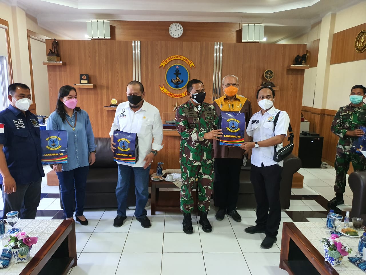 Mendampingi Ketua DPD RI, Senator asal NTT Abraham Liyanto dan Asyera RA Wundalero serta Senator asal Aceh Fachrul Razy dan Senator asal Lampung Bustami Zainuddin. Sementara Danlantamal VII didampingi jajaran lengkap, di antaranya Aspotmar, Asintel, Asops dan sejumlah Asisten lainnya.