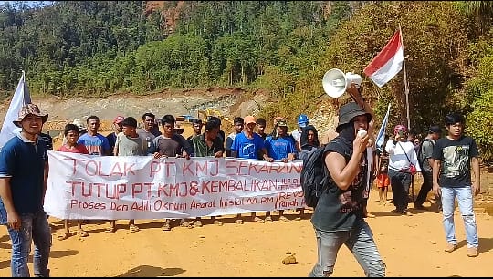 Dalam orasinya Korlap, Edi Kurniawan, mengatakan bahwa aktivitas pertambangan PT. KMJ, untuk segera dihentikan sekaligus ditutup karena tidak memiliki legalitas secara hukum. “Massa aksi menolak dan tutup PT. Konnikel Mitra Jaya (PT.KMJ) sekarang juga dan kembalikan IUP Operasional Produksi PT. Sultra Jembatan Mas (SJM) kepada Negara RI. Ujarnya