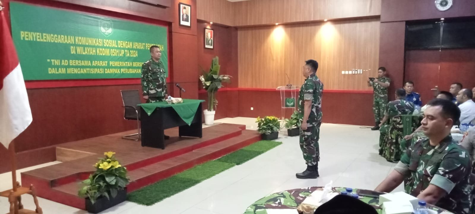 Kasdim 0501/JP Letkol Inf Okky Risdianto, S.I.P, sebagai pemimpin dalam kegiatan Komsos dengan Aparat Pemerintah di wilayah Jakarta Pusat, menyampaikan penyelenggaraan Komsos ini dalam rangka menjalin dan mempererat hubungan kerjasama dengan instansi lainnya yang berada di wilayah Jakarta Pusat, ujarnya