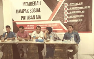 Kesimpulan ini mencuat dalam diskusi bertema “Membedah Dampak Sosial Putusan MA” yang digelar Komunitas Wartawan Politik Makassar di Warkop Dottoro, Jalan Boulevard, Makassar, Minggu (22/4/2018).