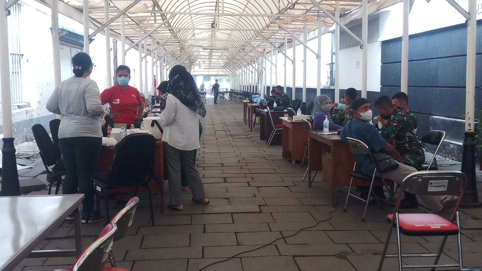 Portalindo.co.id, Jakarta Barat – Koramil 01/Tamansari bersama Polsek Metro Tamansari menggelar kegiatan serbuan vaksinasi Covid-19 jenis Sinovac kepada masyarakat DKI Jakarta, di Kota Tua, Musium Wayang Jalan Pintu Besar Utara No. 27, RT. 03/06, Kel. Pinangsia Kec. Taman Sari, Kota Administrasi Jakarta Barat.Sabtu, 24 Juli 2021.
