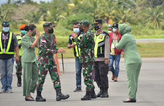 PORTALINDO.CO.ID, JAKARTA – Pangdam XVII/Cenderawasih Mayjen TNI Ignatius Yogo Triyono, M.A. didampingi Ketua Persit KCK PD XVII/Cenderawasih Ny. Natalia Yogo Triyono beserta rombongan tiba di Bandara Mopah Kabupaten Merauke Provinsi Papua disambut langsung oleh Komandan Korem 174/ATW Merauke Brigjen TNI Bangun Nawoko beserta istri Ny. Renny Bangun Nawoko dan Forkopimda Kabupaten Merauke,Kepala staf Korem, para Kepala Seksi Korem serta para Dansat/ Balakrem 174 Merauke.