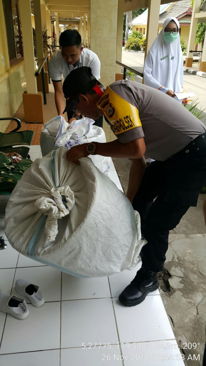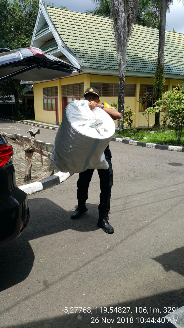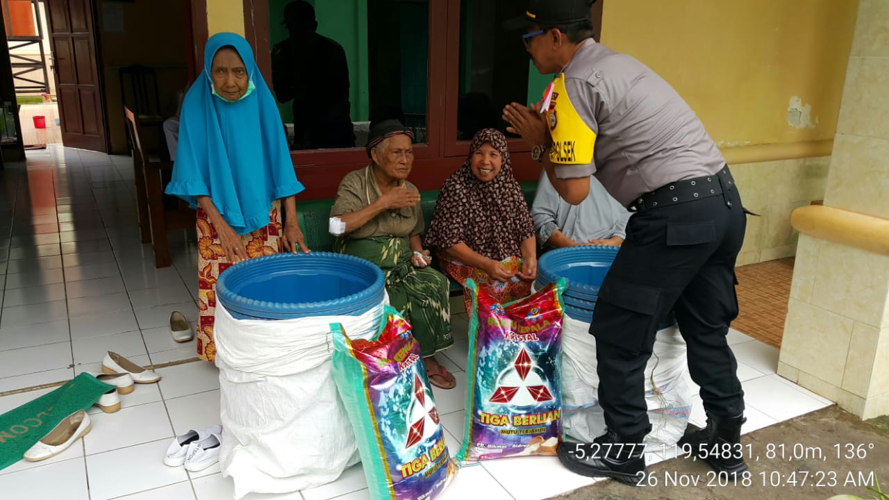 Sejumlah bantuan sembako dan perlengkapan mandi berupa ember dan gayung juga diberikan kepada Panti tersebut. Bahkan, Kapolsek tak segan-segan memikul langsung bantuannya tersebut.