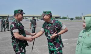 Portalindo.co.id | Makassar – Pangdam XIV/Hasanuddin, Mayjen TNI Windiyatno, bersama Ketua Persit KCK PD XIV/Hasanuddin, Ny. Infita Windiyatno menyambut kedatangan Pangkogabwilhan II, Marsekal Madya TNI M. Khairil Lubis didampingi Ketua IKKT PWA Cabang BS III Ny. Sondang Khairil Lubis dan rombongan, di Baseops Lanud Sultan Hasanuddin, Kec. Mandai, Kabupaten Maros, Sulawesi Selatan. Selasa, (22/07/2025).