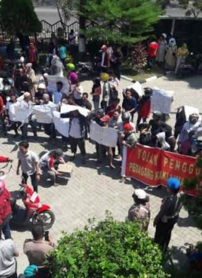 Aksi ini dilakukan menyusul adanya rencana penertiban terhadap pedang kaki lima Pasar Sentral Makassar oleh Pemerintah Kota (Pemkot) Makassar kembali mencuat.