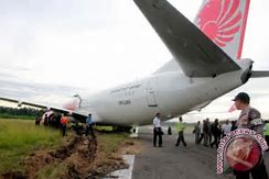 Pesawat Lion Air tersebut mengalami keluar landas pacu atau tergelincir sesaat setelah mendarat ketika hujan deras.