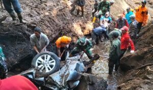 Tanah longsor yang terjadi akibat hujan deras pada Kamis sore kemarin, menimpa dua kendaraan yang sedang melintas di lokasi kejadian. Proses evakuasi korban sempat terhenti akibat cuaca ekstrem, dan baru dapat dilanjutkan kembali pada Jumat pagi.