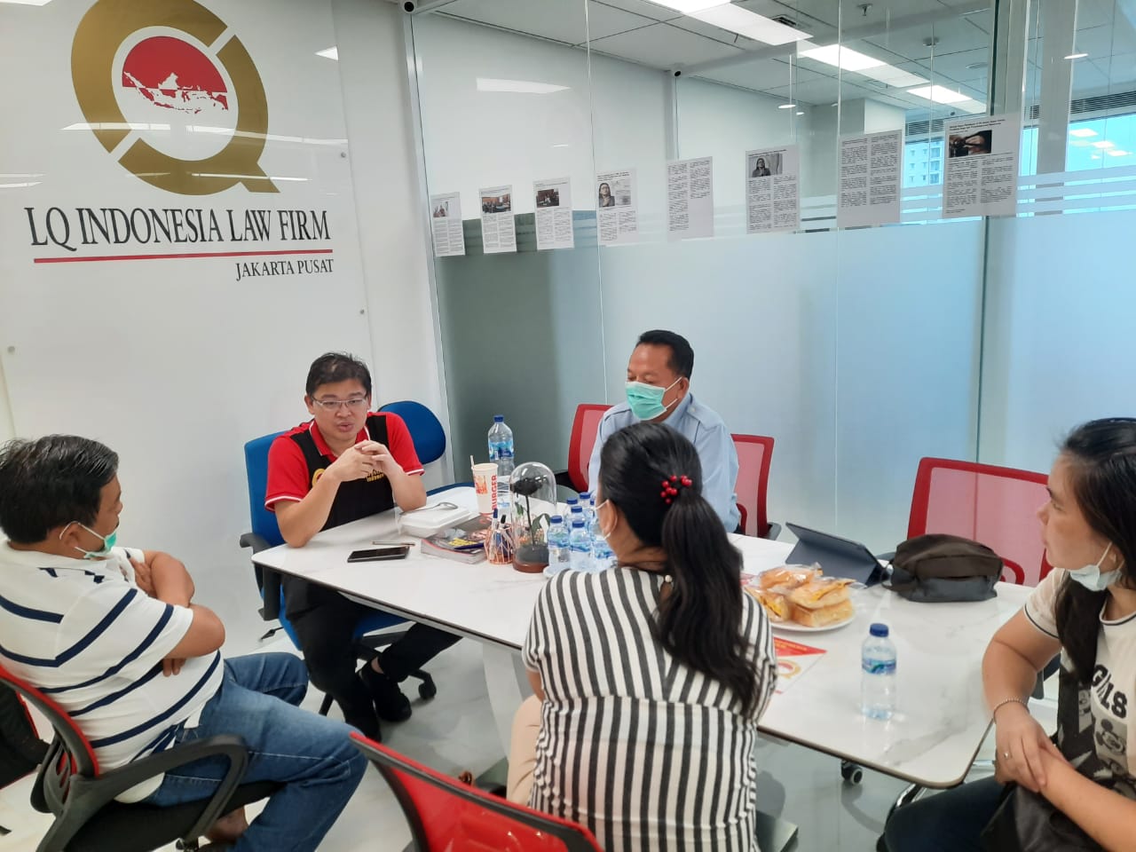 Founder LQ Indonesia Law Firm Advokat Alvin Lim, SH., MS.c., CFP., CLA., Advokat Leo Detri., SH., MH. beserta teamnya yaitu Advokat Firton Ernesto MS, SH., MH dan Advokat Ali Nugroho, SH. Dengan sigap melakukan rapat internal hingga memberikan win win solusi terbaik bagi klien.