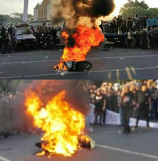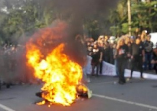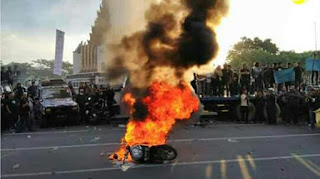 Aksi pembakaran sepeda motor Honda Scoopy dengan nomor polisi DD 2723 VZ, atas dasar kekecewaan dan sebagai bentuk perlawanan terhadap matinya demokrasi di Kota Makassar.