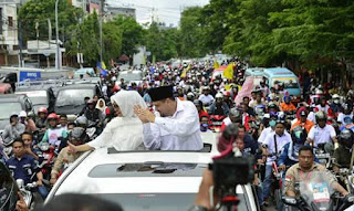 Sebelum menuju ke lokasi kampanye sejumlah pendukung dari berbagai wilayah di kota Makassar melakukan konvoi.