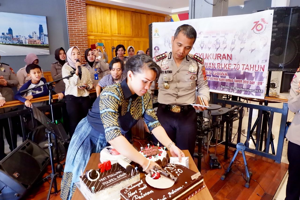 Portalindo.co.id ,Gowa-Dalam rangka memperingati Hari Jadi Polwan Republik Indonesia ke-70 tahun, Polwan Polres Gowa menggelar acara syukuran di Lobby Cafe Jl. Hertasning Kota Makassar, Senin (10/09/2018) pukul 13.00 wita.