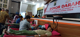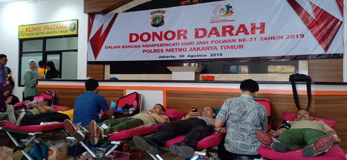 Jakarta – Anggota Kodim 0505/Jakarta timur sukseskan kegiatan hari jadi Polwan Dalam Rangka Memperingati HUT Polwan Ke 71 Polwan dengan dalam Giat Donor Darah bertempat di Polres Jakarta timur. Jumat (30/8/2019).
