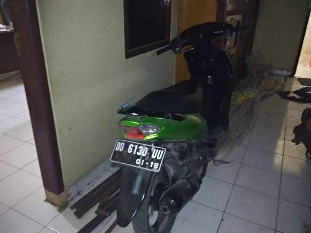Satu unit sepeda motor Yamaha sporty warna hijau dan satu buah kunci leter T .