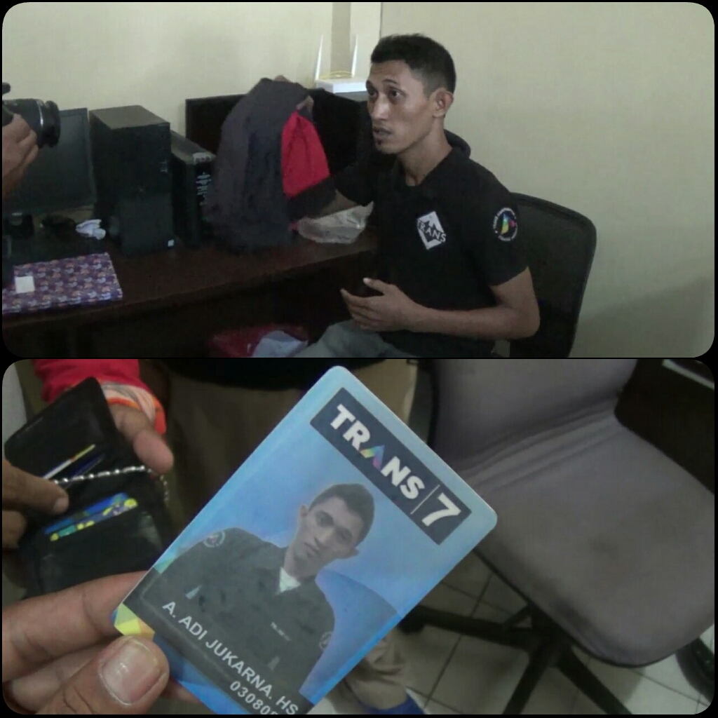 Peristiwa yang terjadi pada pukul 09.30 Wita Kamis, (26/4/2018) di Pos Lalulintas Lampu Merah Jalan Malino, Sungguminasa ini bermula saat pelaku, AJ (31) datang dengan mengenakan kostum dan Id Card Trans7 dan berusaha mengintimidasi salah seorang petugas lalulintas lantaran mengamankan satu unit sepeda motor yang tak dilengkapi surat kelengkapan.