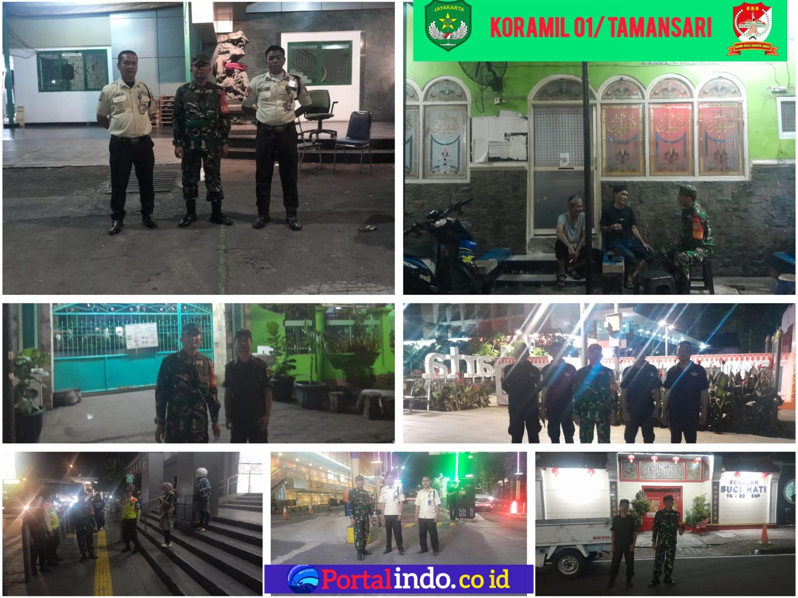 Portalindo.co.id | Kodam Jaya, Kodim 0503/JB _ Dalam rangka mengoptimalkan pengawasan terhadap objek vital dan strategis, seperti sekolah, tempat ibadah, kantor pemerintah, dan sentra ekonomi, Babinsa Serka Suharno dan Komduk, Wanra dan Mitra Koramil melaksanakan patroli malam hari.