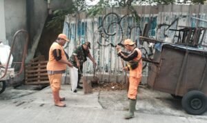 Portalindo.co.id | Kodam Jaya, Jakarta Barat _ Babinsa Kelurahan Maphar Pelda Ery Hendrawan anggota Koramil 01/Tamansari Kodim 0503/JB melaksanakan pembersihan lingkungan di Jalan Kebon Jeruk CVI, RT. 02, RW.