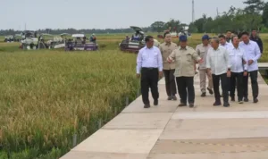 Ekonomi – Menteri Perindustrian Airlangga Hartarto didampingi Sekretaris Jenderal Kemenperin Haris Munandar dan Direktur Jenderal Ketahanan dan Pengembangan Akses Industri Internasional Kemenperin I Gusti Putu Suryawirawan serta Kepala PIRNAS Andi Tanra memperhatikan spesimen rotan saat mengunjungi Pusat Inovasi Rotan Nasional, Palu, 20 April 2018.