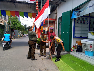 Pemasangan bendera merah putih dan umbul-umbul di wilayah dalam rangka persiapan menjelang Hari Ulang Tahun (HUT) RI ke-74 sekaligus untuk melopori kepada warga, agar warga memasang juga bendera merah putih di lingkungan.