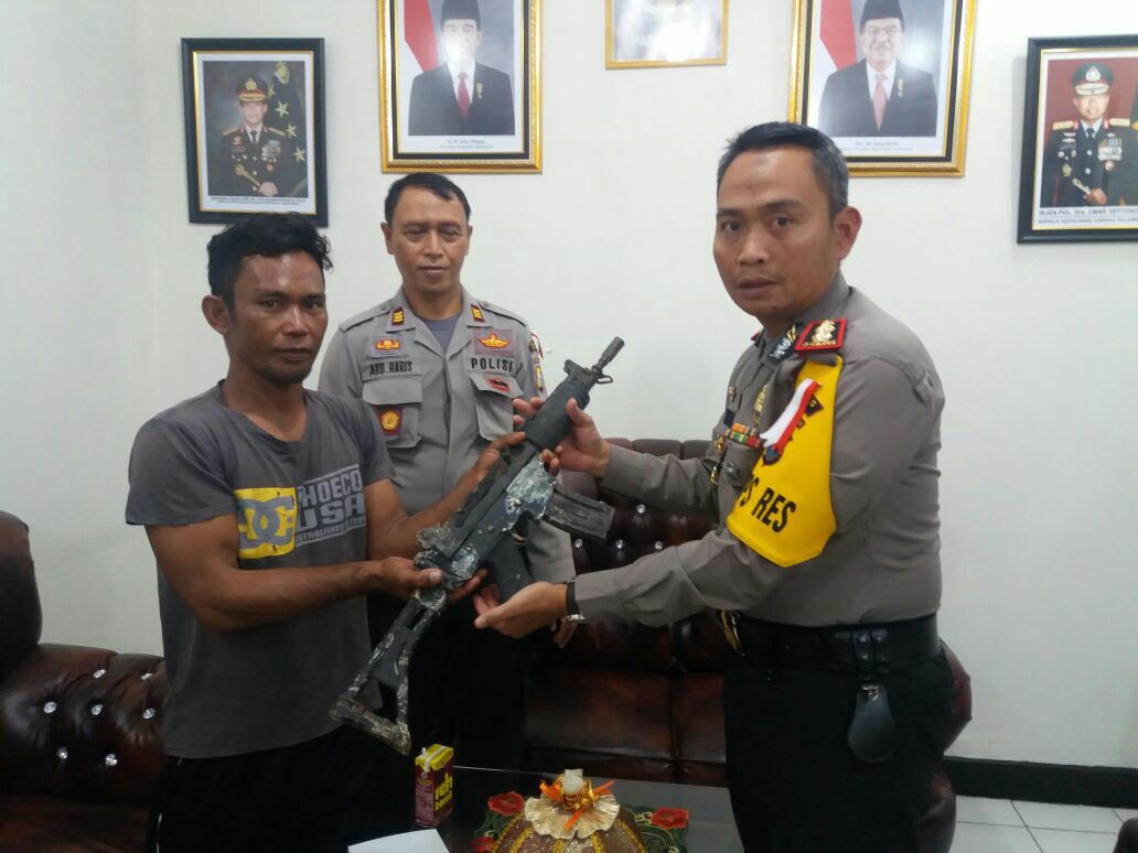 Sinjai Senin tanggal 09 April 2018, sekitar pukul 02.00 wita telah ditemukan 1 (satu) pucuk Senjata Api Laras Panjang Jenis SS1-V5 KAL 5,56 dengan Nomor Senpi AED 002289 oleh Nelayan tepatnya di perairan pasiloange desa pulau harapan, kec. pulau sembilan, kab. sinjai an. lel. Manai Bin Sabri, umur 31 tahun, pek. nelayan, alamat pulau matalaang, kab. pangkep.