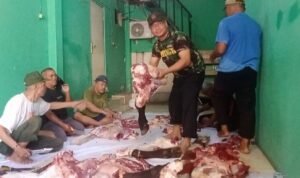 Portalindo.co.id | Kodam Jaya, Kodim 0503/JB _ Menyambut Hari Raya Idul Adha 1446 H/2025 M, Koramil 01/Tamansari melaksanakan penyembelihan hewan qurban berupa Sapi 1 ekor dan Kambing 8 ekor di halaman Makoramil Jalan Mangga besar VI Utara, Kelurahan Tamansari Kecamatan Tamansari, Jakarta Barat. Jum’at (6/6)